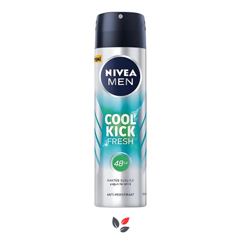NIVEA Men Cool Kick Fresh Sprey Deodorant, 48 saat boyunca ter ve kötü kokuya karşı etkili koruma sunan özel formülüyle erkeklere özel olarak geliştirilmiştir. Ferahlatıcı mentol etkisiyle serinlik ve enerji hissi verir.