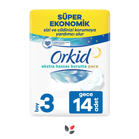Orkid Ekstra Hassas Koruma Gece Boy 3 Hijyenik Ped 14'lü