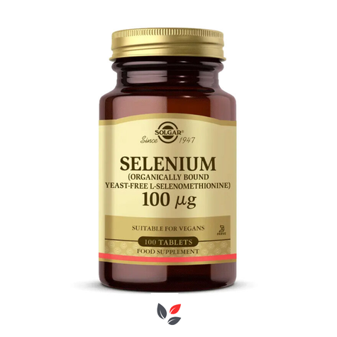 Solgar Selenium 100 mcg, her tablette 100 mcg selenyum içeren bir takviye edici gıdadır. Selenyum, bağışıklık sisteminin normal fonksiyonuna, normal tiroit fonksiyonuna ve normal saç ile tırnakların korunmasına katkıda bulunur. Ürün, şeker, tuz, nişasta, maya, buğday, glüten, soya ve süt ürünleri gibi potansiyel alerjenleri içermez. Ayrıca yapay aroma, renklendirici, tatlandırıcı ve koruyucular kullanılmamıştır. Vegan ve vejetaryen bireylerin kullanımına uygundur.