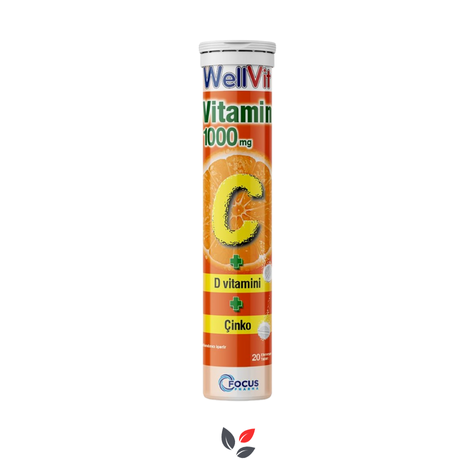 Wellvit Vitamin C +D+Çinko 1000 mg 20 Efervesan Tablet